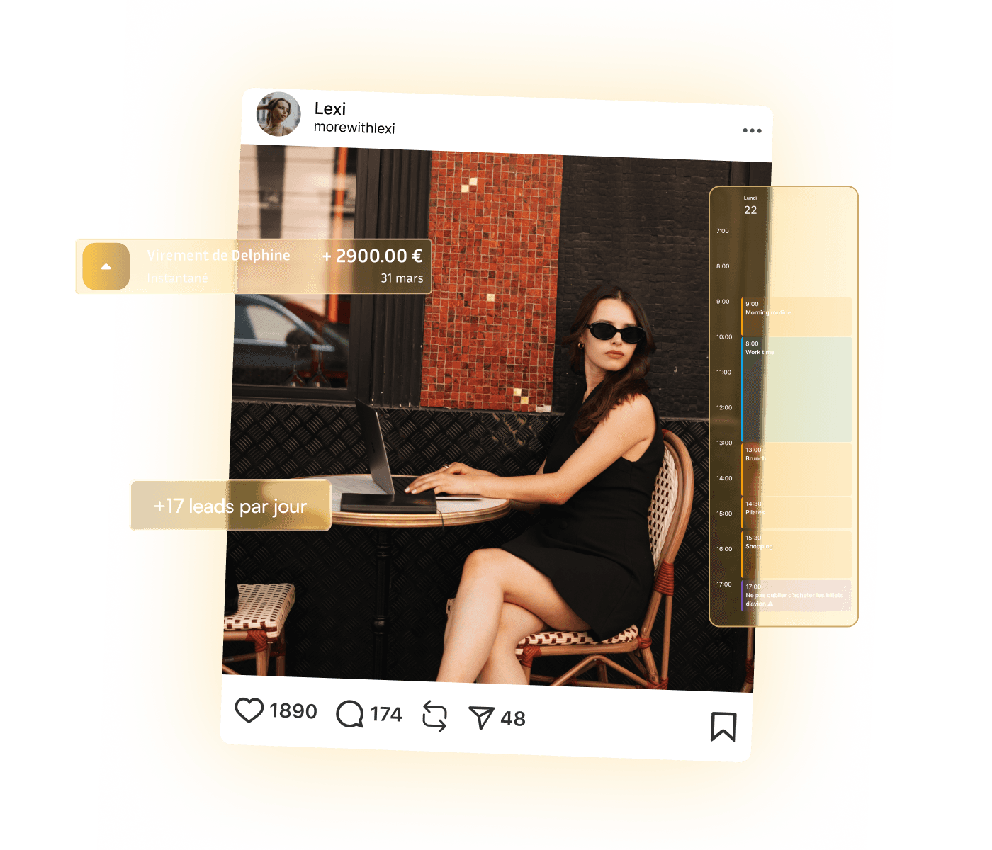 Aujourd’hui, je transmets ces méthodes aux femmes ambitieuses. Avec le SCL Club™, je leur donne les clés pour maîtriser le personal branding et les réseaux sociaux, afin qu'elles puissent, elles aussi, quitter le salariat et bâtir leur propre indépendance en 12 semaines.